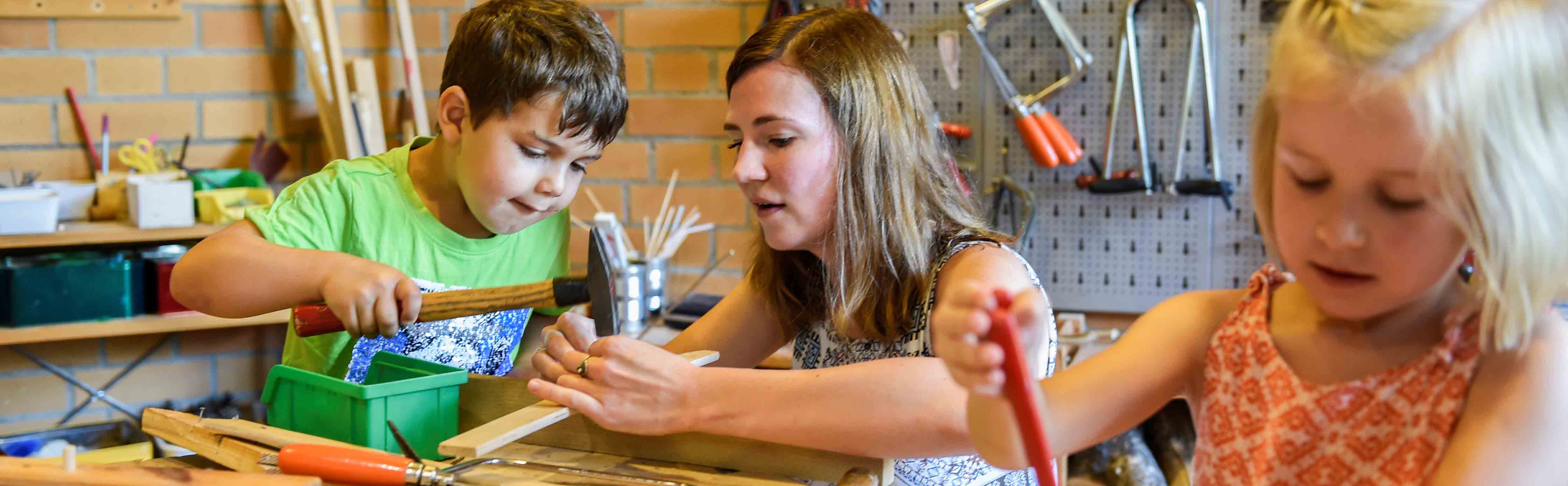 Bauzimmer, Rollenspielzimmer mit Leseecke, Bewegungsraum, Kunstwerkstatt, Holzwerkstatt, Ruheraum, weitläufiger Flur, Garten mit Matsch- und Sandbereich, Klettermöglichkeit, Mehrzweckfläche … - eine vertrauensvolle Atmosphäre, in der sich die Kinder mit ihren individuellen, sozialen und kulturellen Unterschieden wertgeschätzt, willkommen und angenommen fühlen